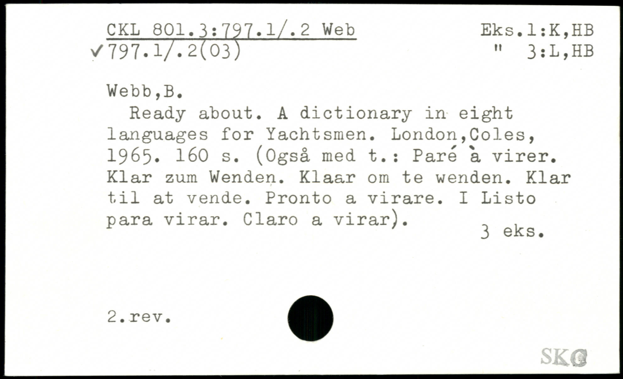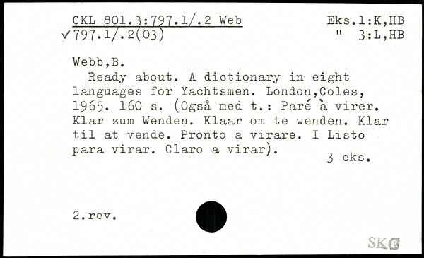 Ready about. A dictionary in eight languages for Yachtsmen.