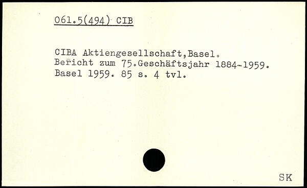 CIBA Aktiengesellschaft,Basel, Bericht zum 75,Geschäftsjahr 1884-1959.
