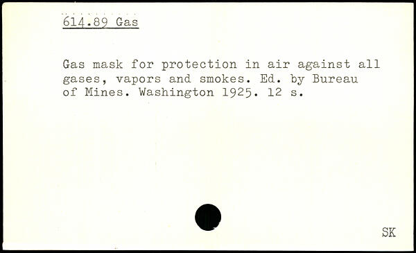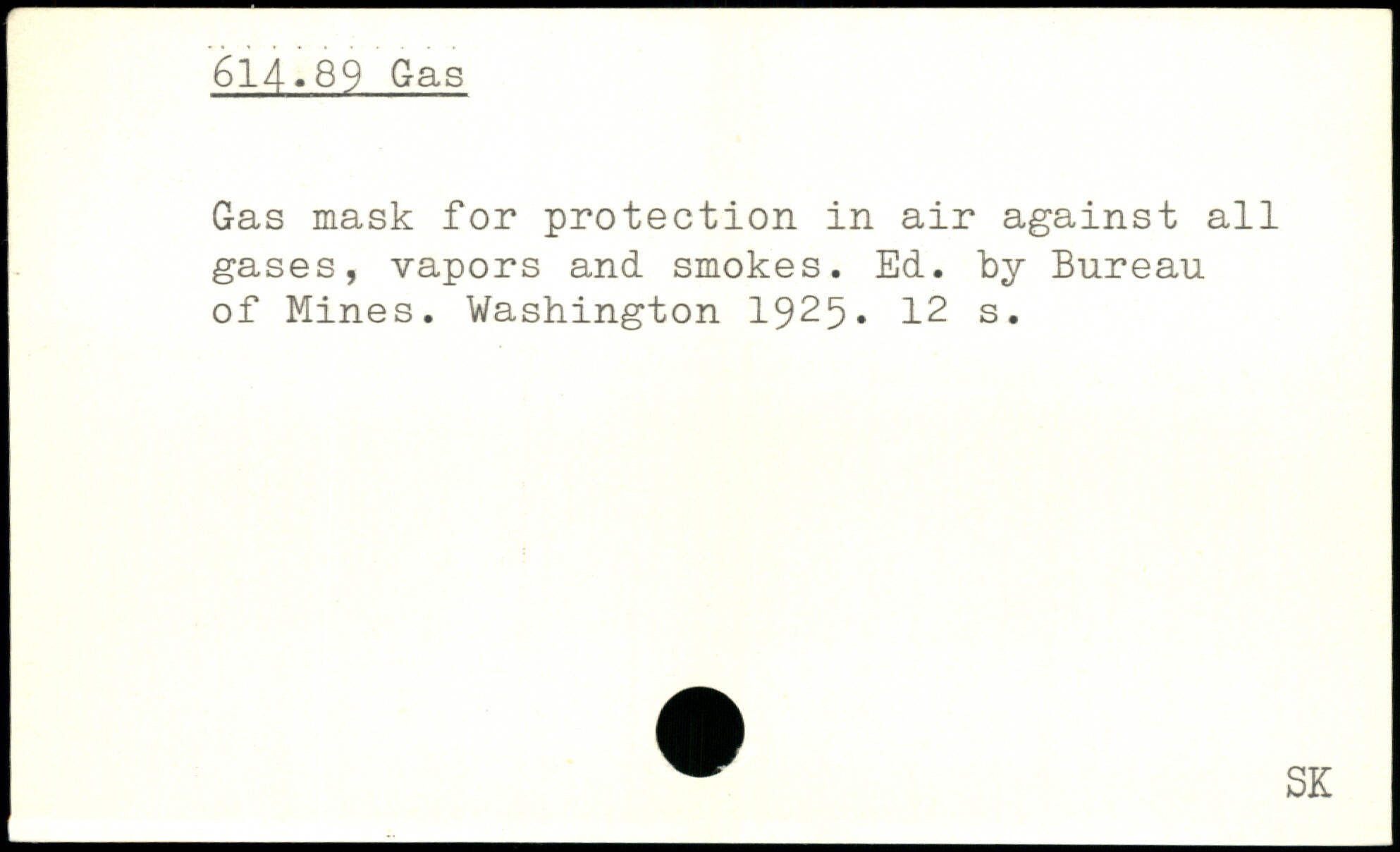 Gas mask for protection in air against all gases, vapors and smokes. Ed. by Bureau of Mines.