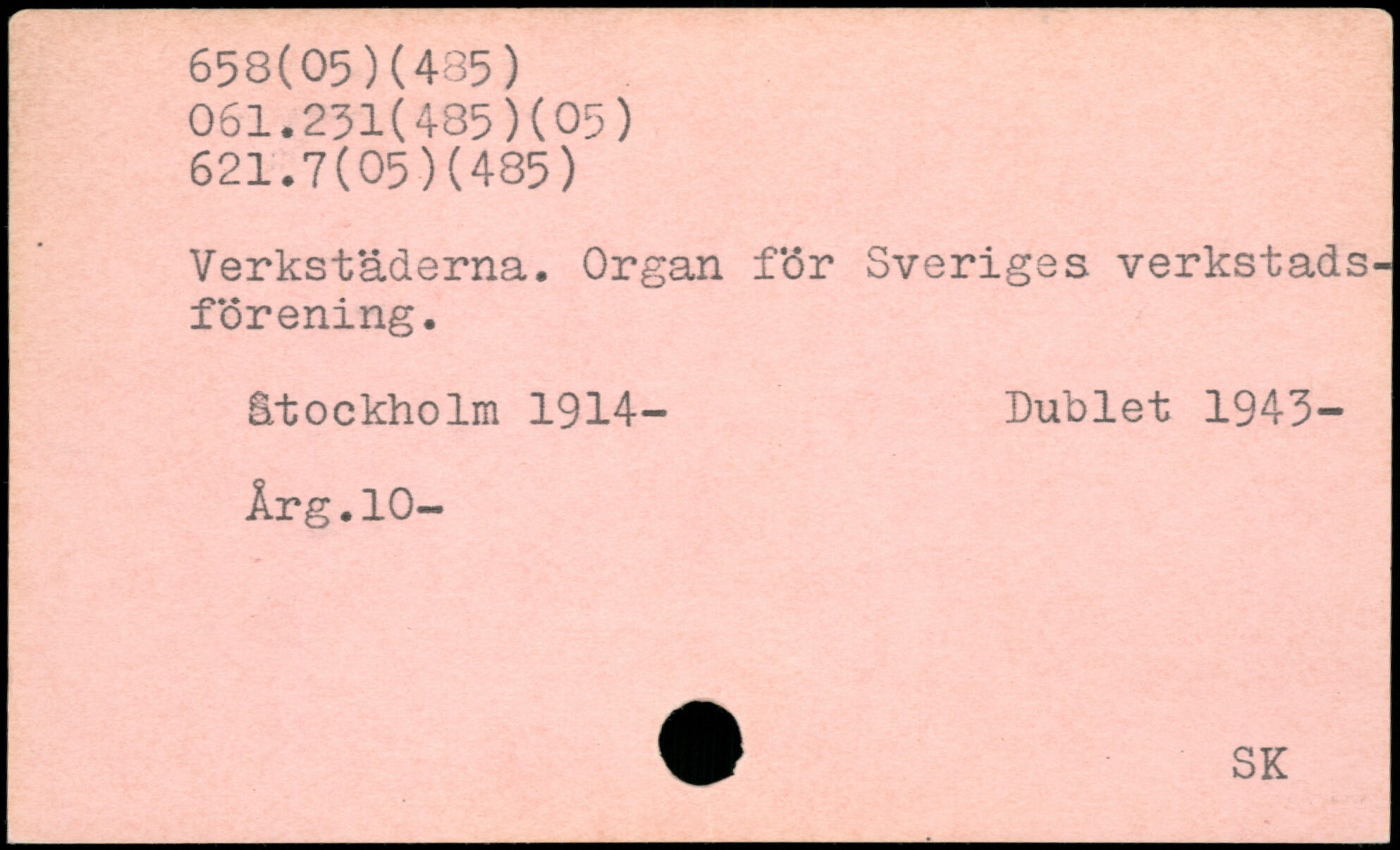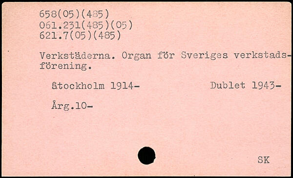 Verkstäderna. Organ för Sveriges verkstads-förening. åtockholm 1914- Dublet 1943- Årg.10- W SK