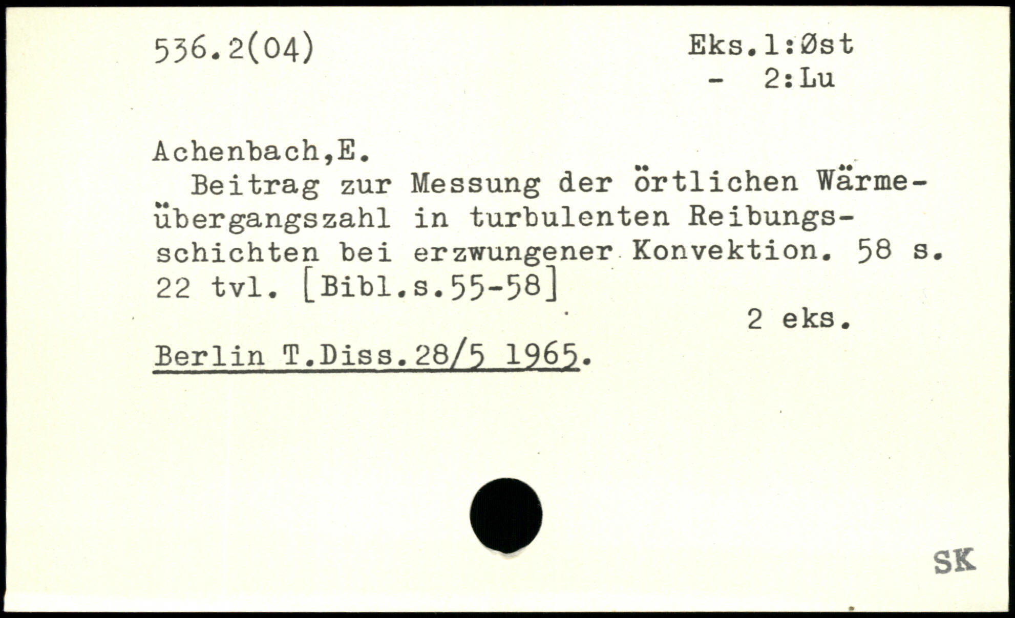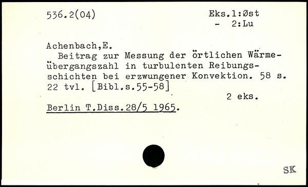 Beitrag zur Messung der örtlichen Wärmeübergangszahl in turbulenten Reibungsschichten bei erzwungener Konvektion.