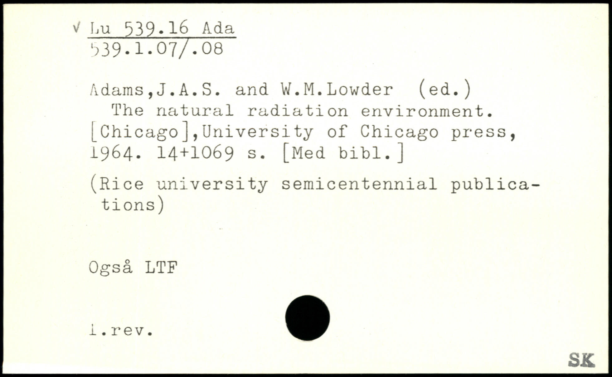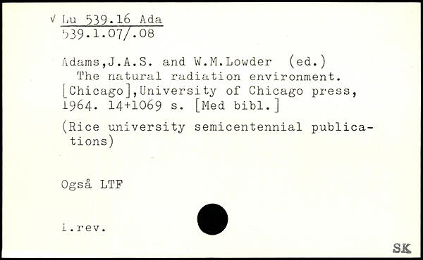 The natural radiation environment. [Chicago],University of Chicago press, 1964.