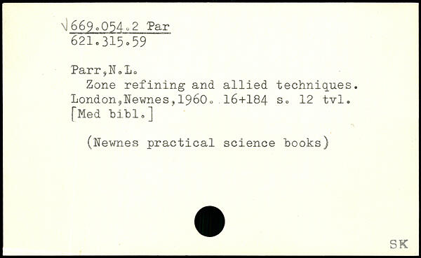 Zone refining and allied techniques. London9Newnes,19600