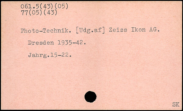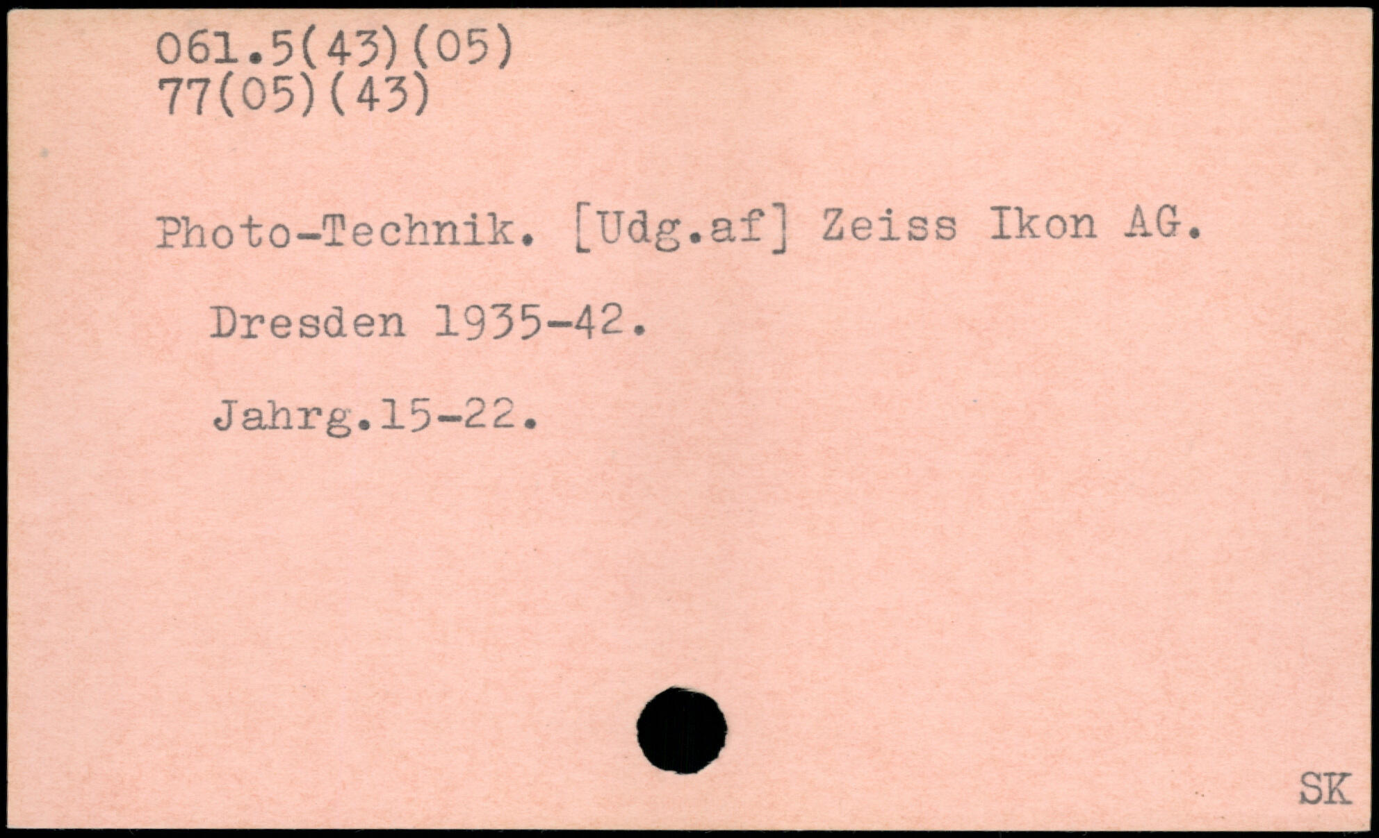 Photo-Technik. [Udg.af] Zeiss Ikon AG. Dresden 1935-42. Jahrg.15-22.
