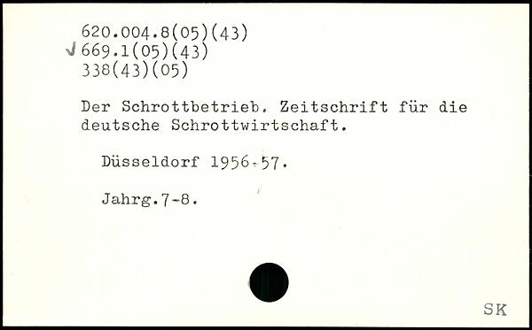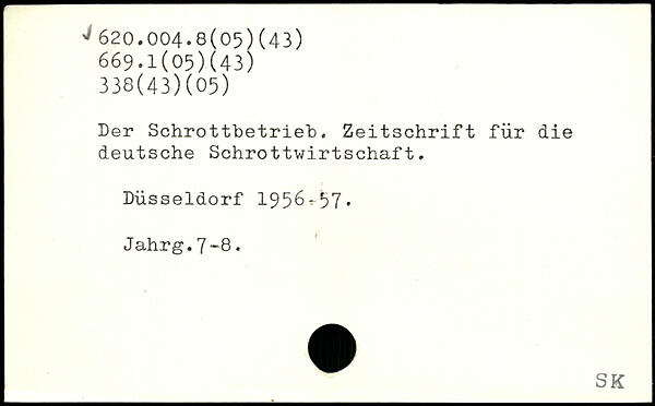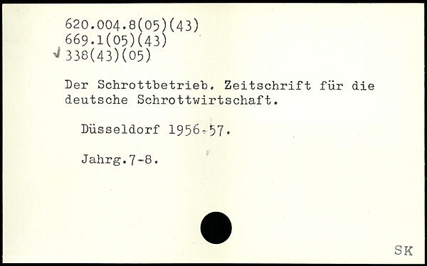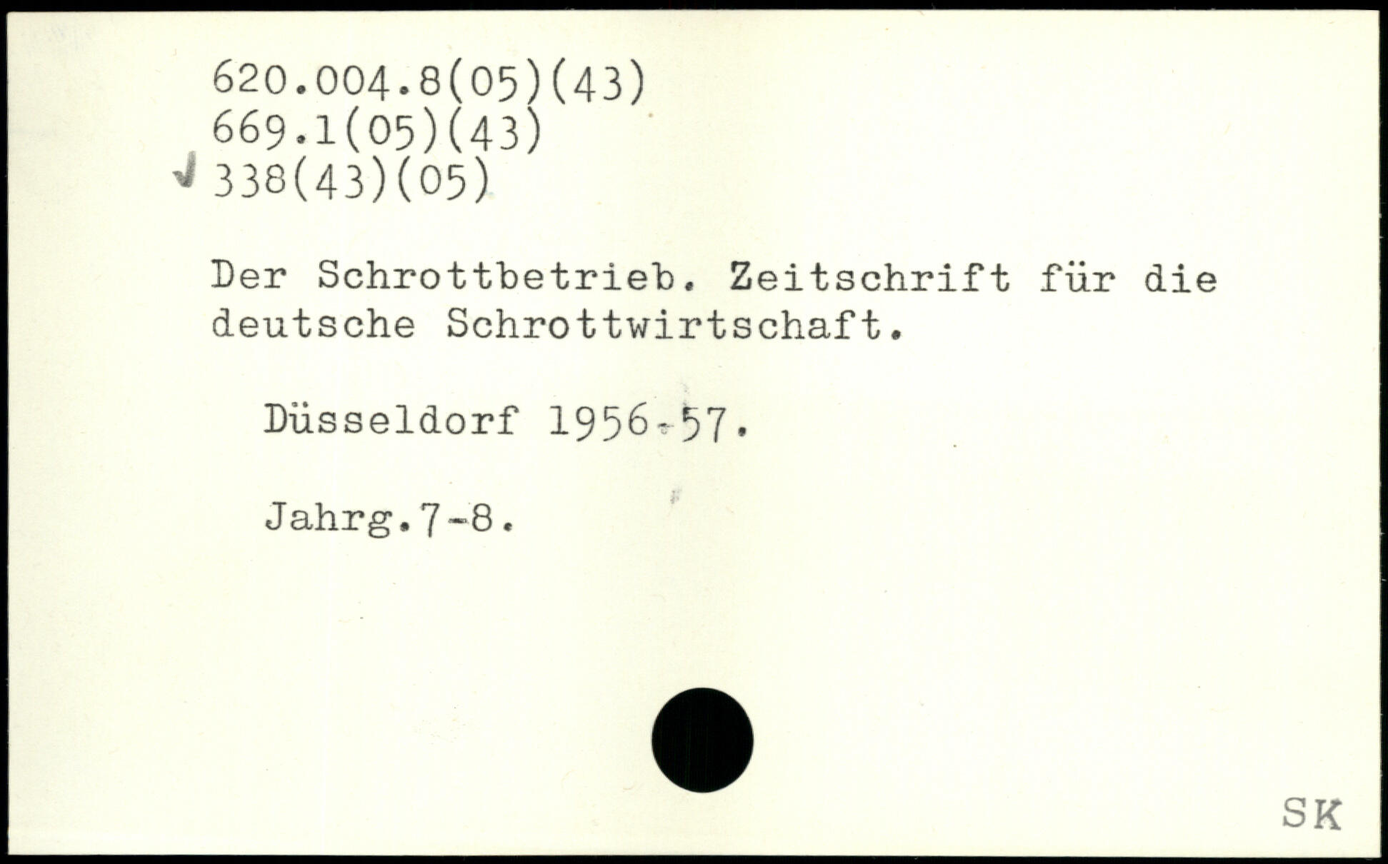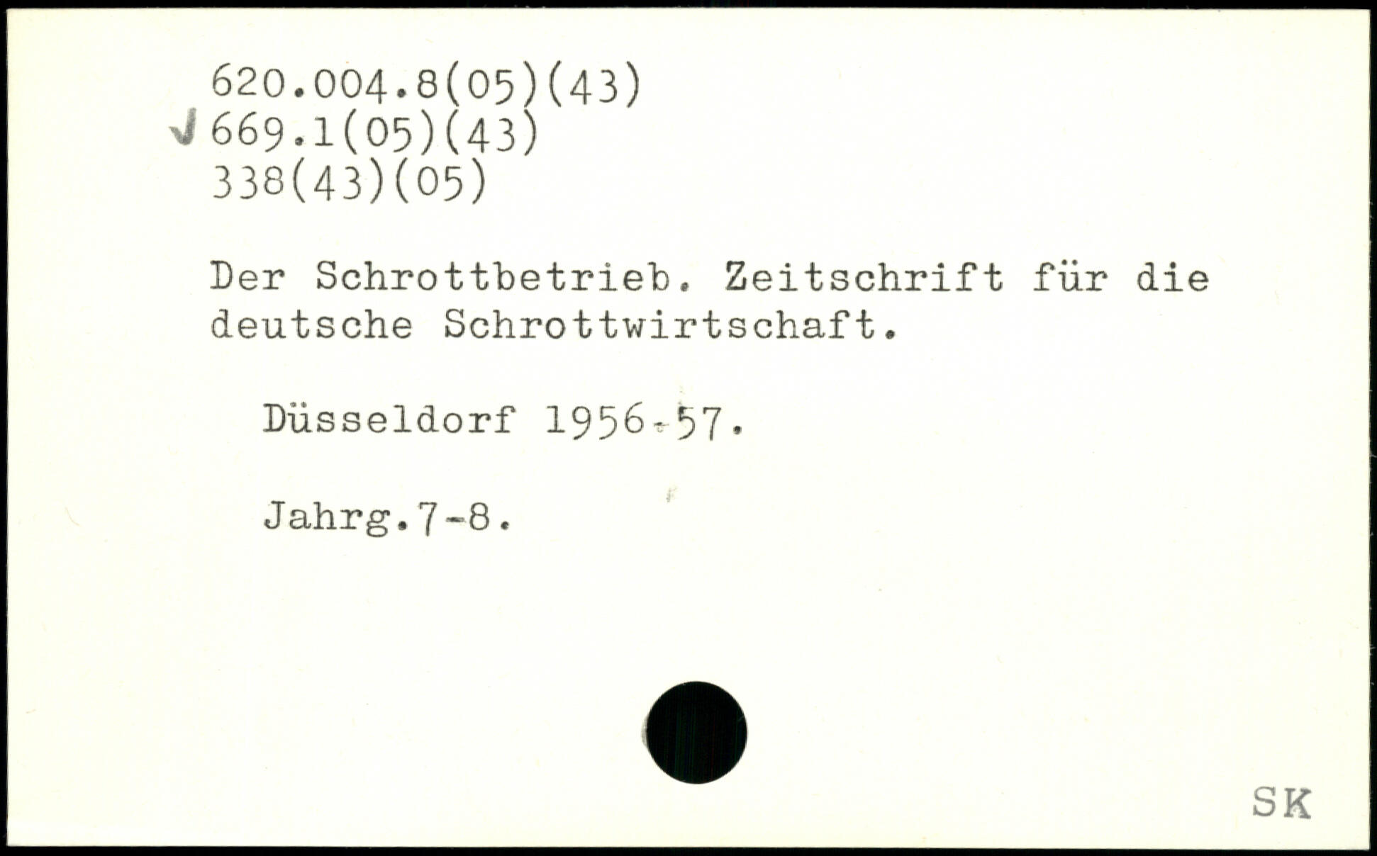 Der Schrottbetrieb. Zeitschrift für die deutsche Schrottwirtschaft. Düsseldorf 1956.57. Jahrg.7~8.
