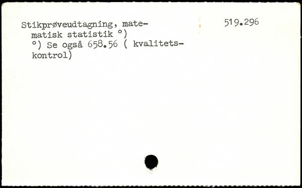 . I. .1 M, , M , .... II.. ' Stikprøveudtagning, mate- , 5^ 9.296 matisk statistik .) .) Se også 658.56 ( kvalitetskontrol)