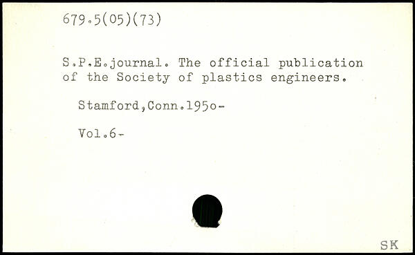 S.P,Eojournal. The official publication of the Society of plastics engineers. Stamford,Conn.195o“ Yol,6~