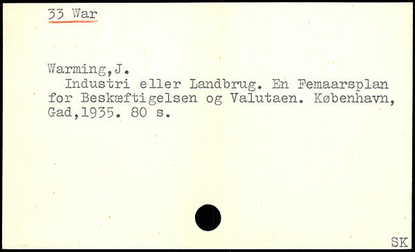 Industri eller Landbrug. En Femaarsplan for Beskæftigelsen og Valutaen.