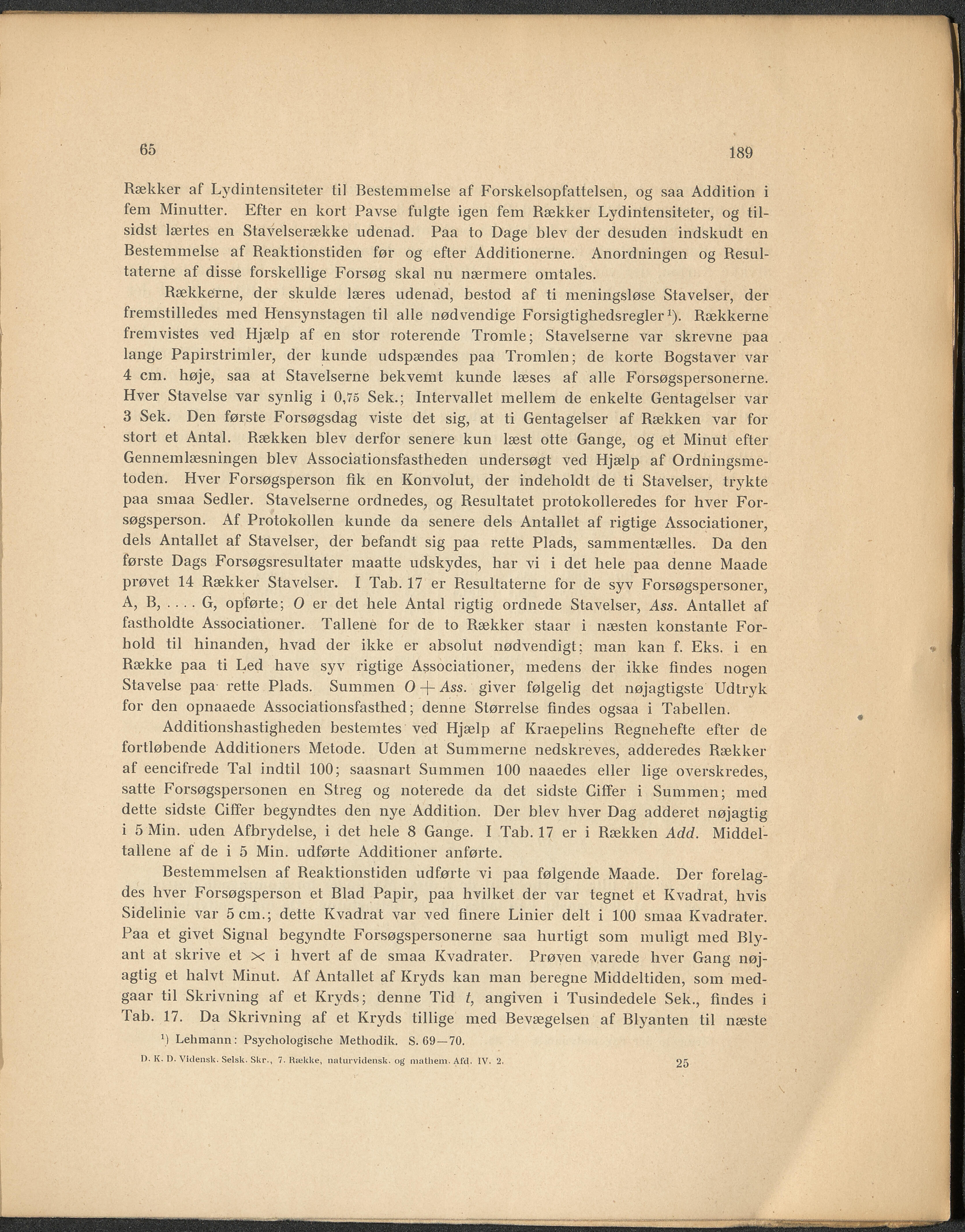 x) Lehmann: Psychologische Methodik, S. 69—70.