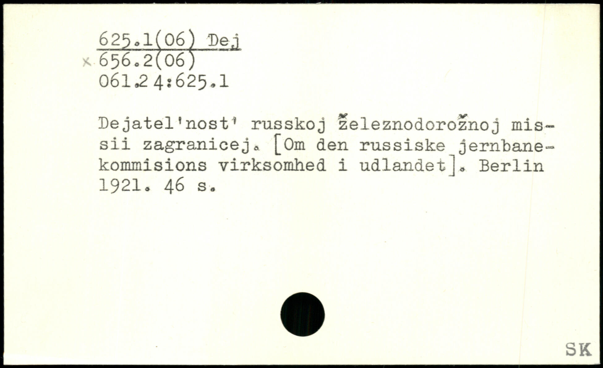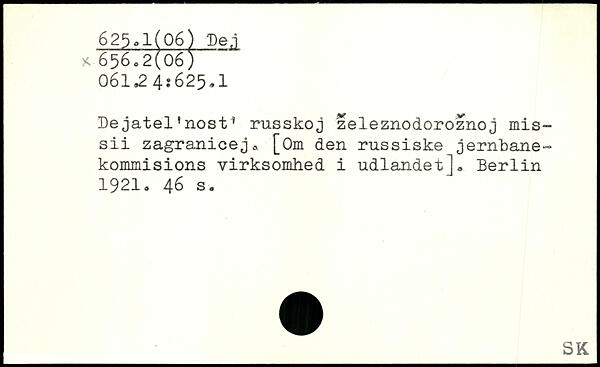 Dejatel’nost1 russkoj zeleznodoroznoj mis-sii zagranicej. [Om den russiske jernbane-kommisions virksomhed i udlandet].