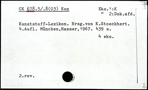 Kunststoff-Lexikon. Hrsg.von K.Stoeckhert.