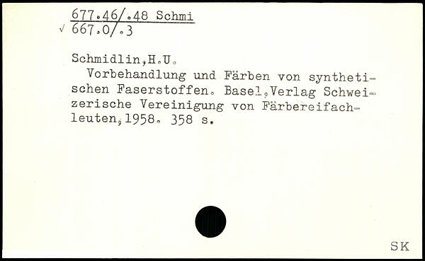 Vorbehandlung und Färben von synthetic sehen Faserstoffen, Basel?Verlag Schwei^ zerische Vereinigung von Färbereifach-leuten?1958