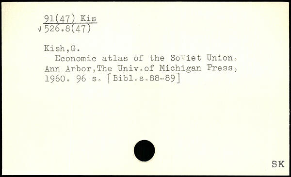 Economic atlas of the Soviet Union, Ann Arbor,The Univ.of Michigan Press, 1960