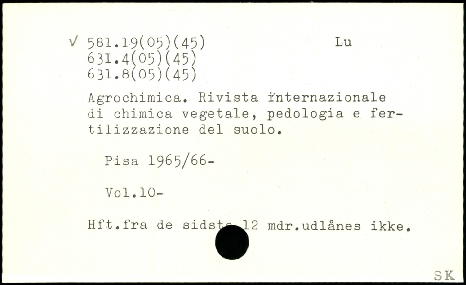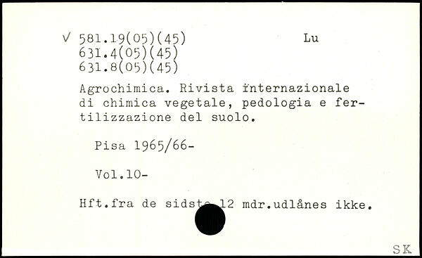 Agrochimica. Rivista i'nternazionale di chimica vegetale, pedologia e fer-tilizzazione del suolo.