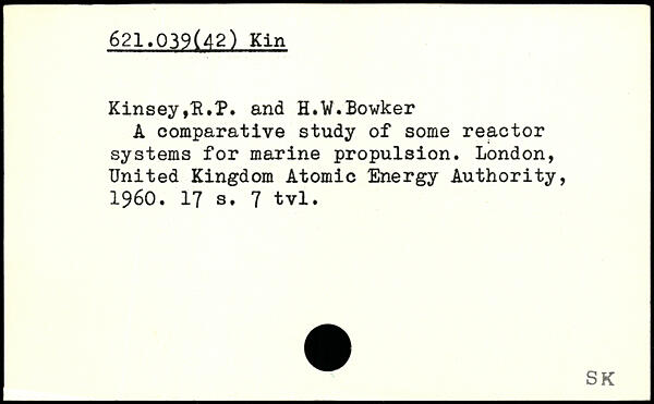 A comparative study of some reactor systems for marine propulsion. London, United Kingdom Atomic Energy Authority, 1960.