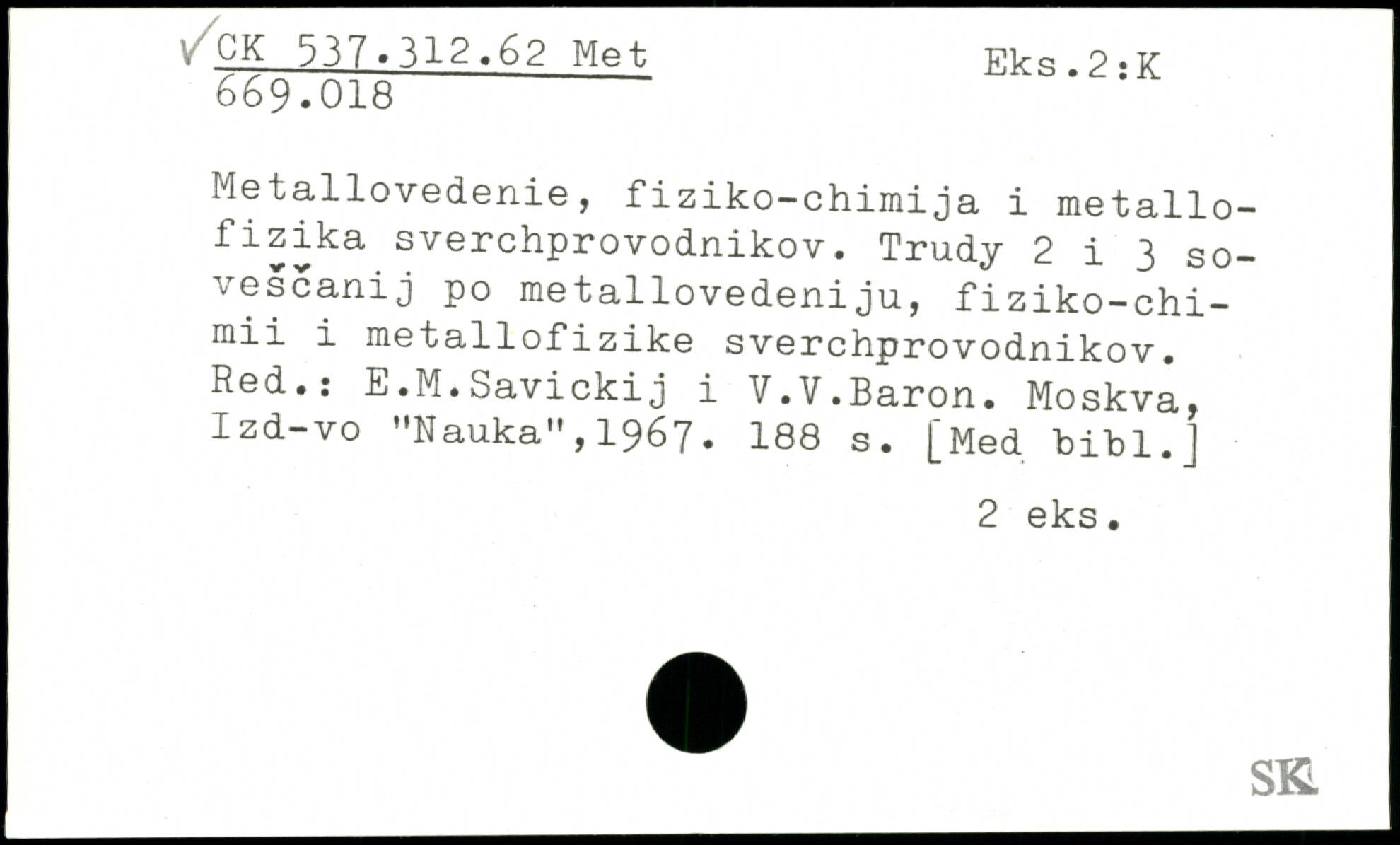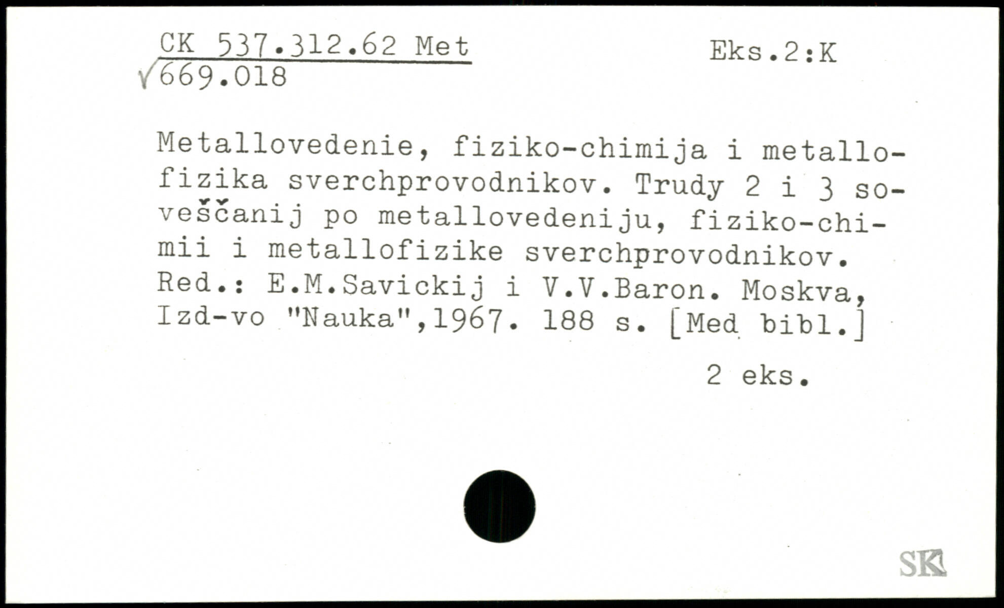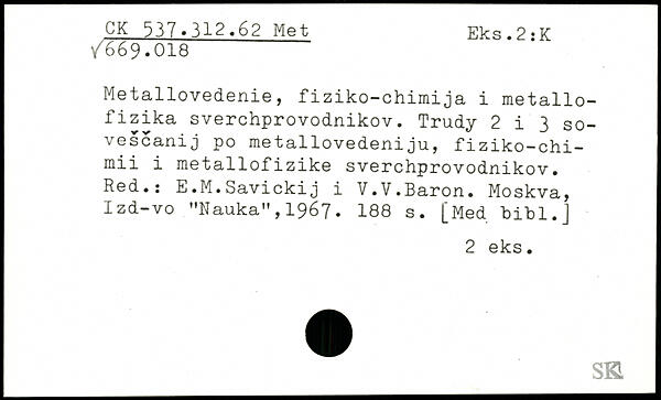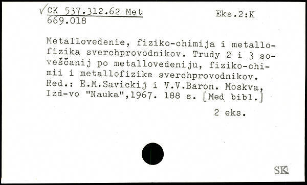 Metallovedenie, fiziko-chimija i metallo-fizika sverchprovodnikov. Trudy 2 i