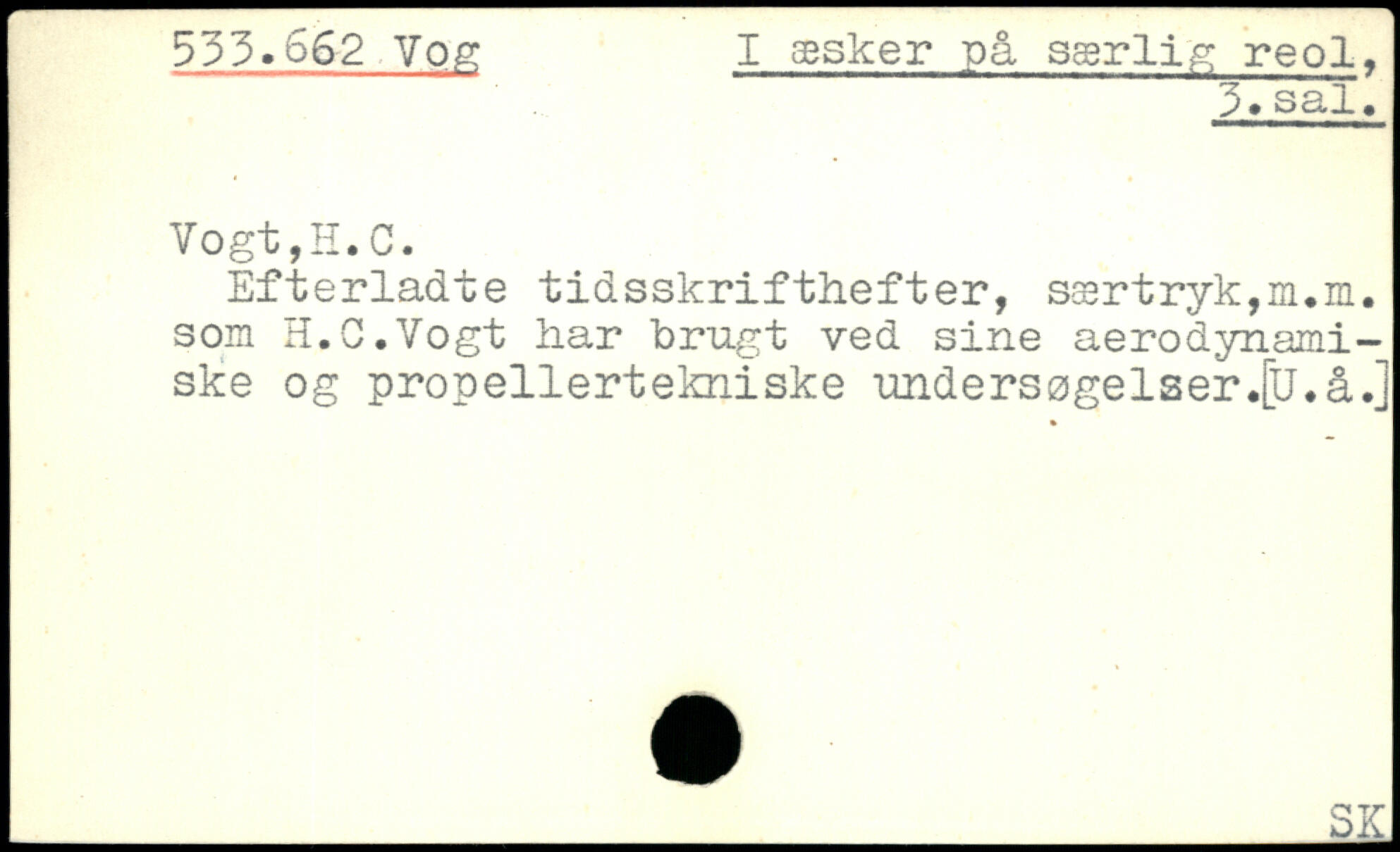 Efterladte tidsskrifthefter, særtryk,m.m. som H. C .Vogt liar brugt ved sine aerodynamiske og propellertekniske undersøgelser.fu.å.]