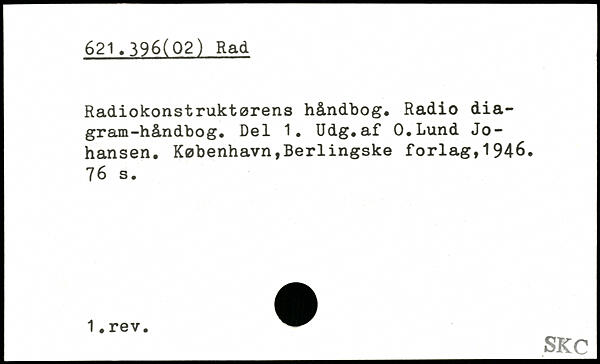 Radiokonstruktørens håndbog. Radio diagram-håndbog. Del 1. Udg.af O.Lund Johansen.