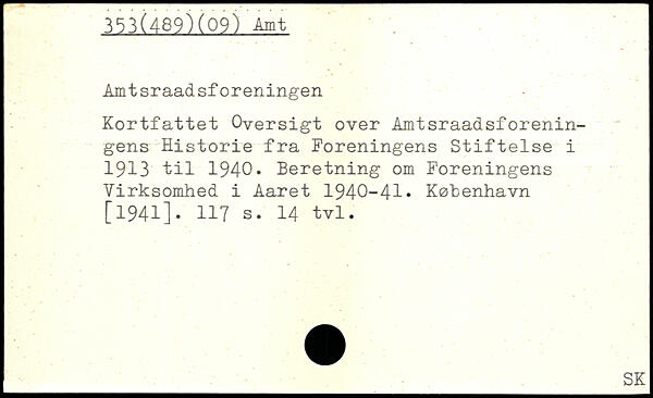 Kortfattet Oversigt over Amtsraadsforenin-gens Historie fra Foreningens Stiftelse i 1913 til 1940. Beretning om Foreningens Virksomhed i Aaret 1940-41, Køtsenhavn [1941].