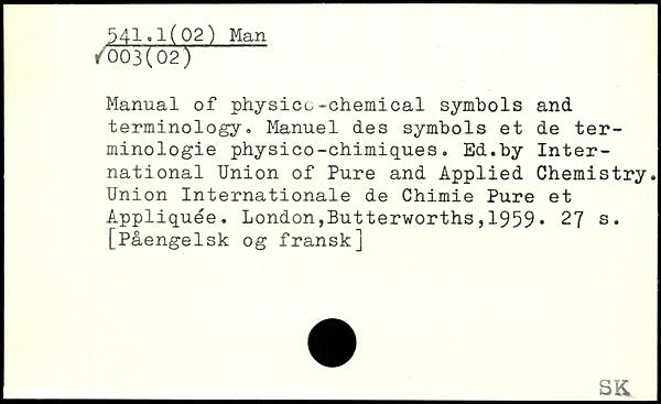 Manual of physicc-Chemical symbols and terminology. Manuel des symbols et de terminologie physico-chimiques. Ed.by International Union of Pure and Applied Chemistry. Union Internationale de Chimie Pure et Appliquée.