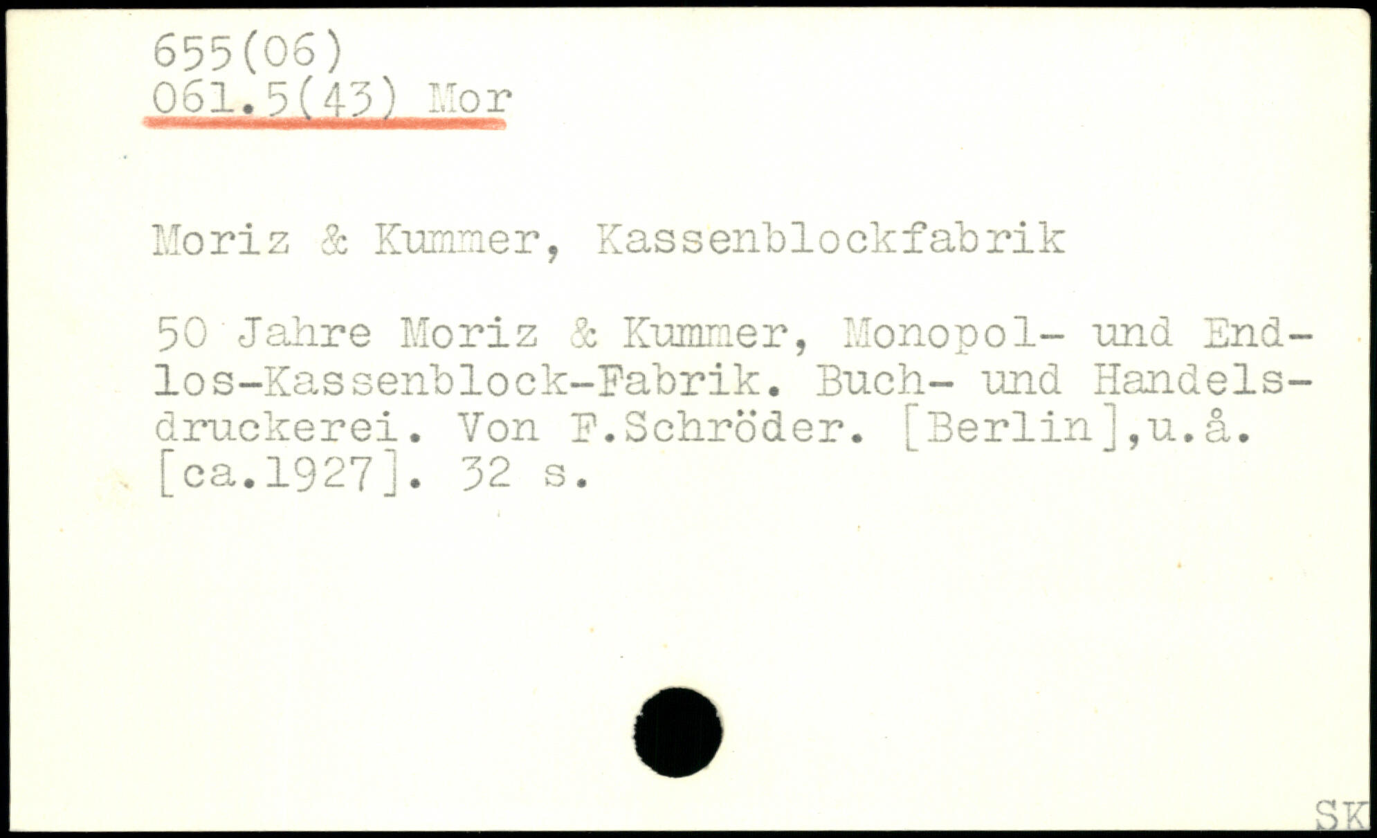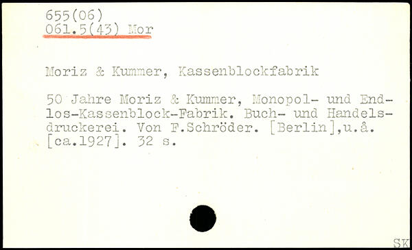 Moriz & Kummer, Kassenblockfabrik 50 Jahre Moriz & Kummer, Monopol- und Snd-los-Kassenblock-Fabrik. Buch- und Handelsdruckerei. Von F.Schröder. [Berlinj,u.ä.