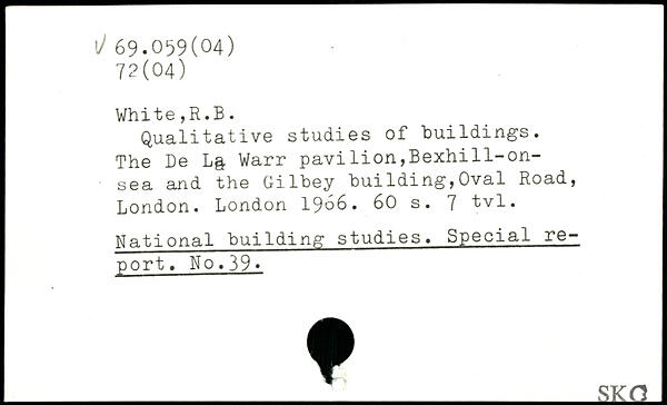 Qualitative studies of buildings. The De Lg. Warr pavilion,Bexhill-on-sea and the Gilbey building,Oval Road, London.