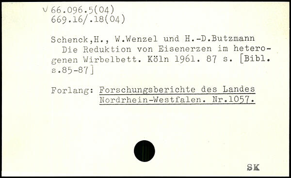 Schenck ,H. , V/.Wenzel und. H.-D.Butzmann Die Reduktion von Eisenerzen im heterogenen Wirbelbett.