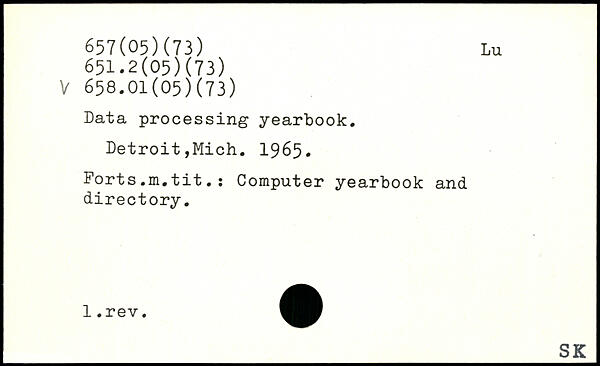 Data processing yearbook. Detroit,Mich. 1965. Forts.m.tit.: Computer yearbook and directory.