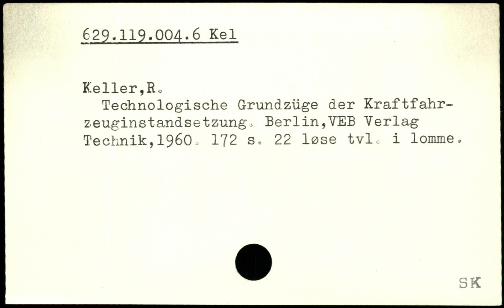 Technologische Grundzüge der Kraftfahrzeuginstandsetzung., Berlin,VEB Verlag Technik,1960, 172 s. 22 løse tvl. i lomme.