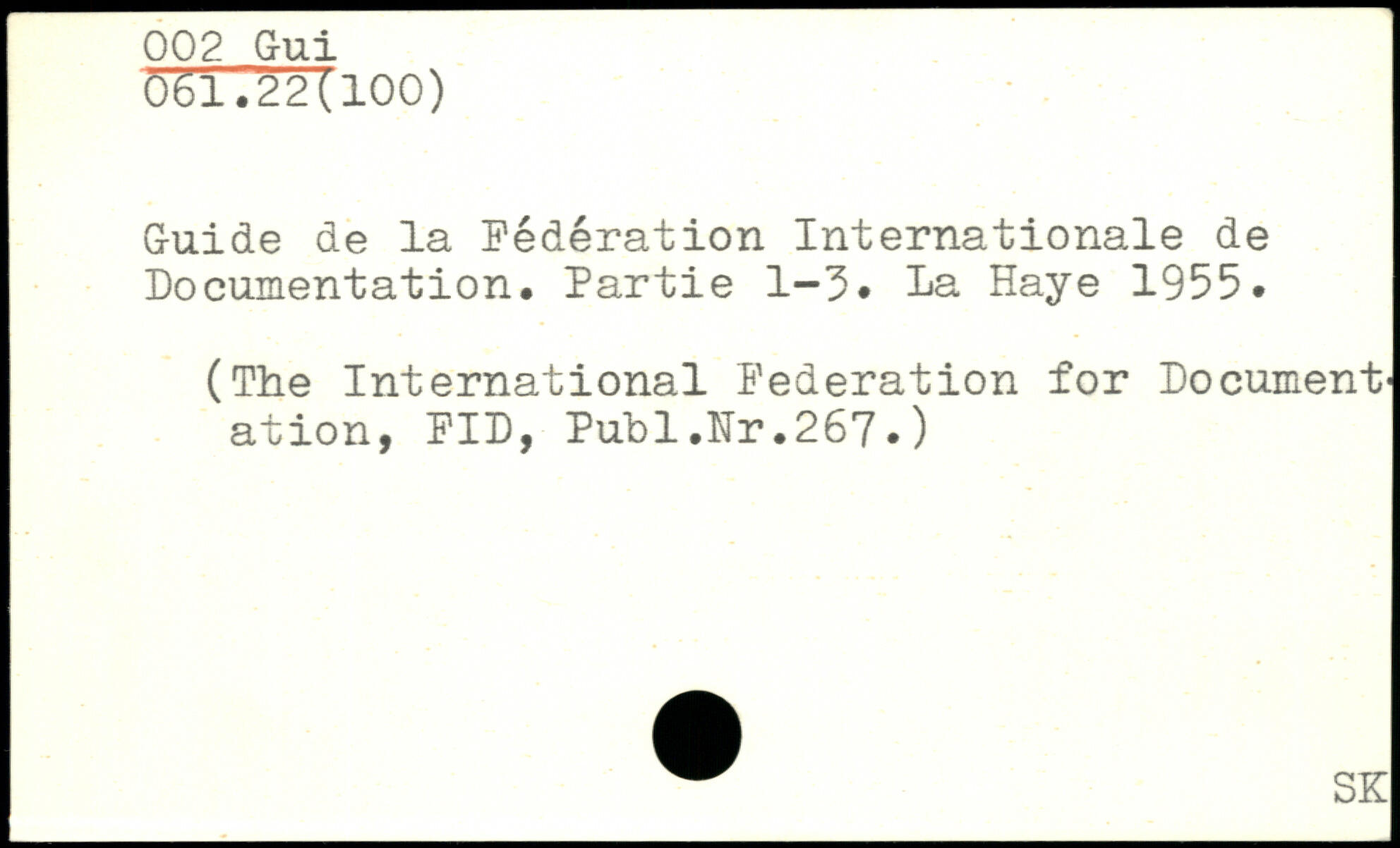 Guide de la Fédération Internationale de Documentation, Partie 1-3.