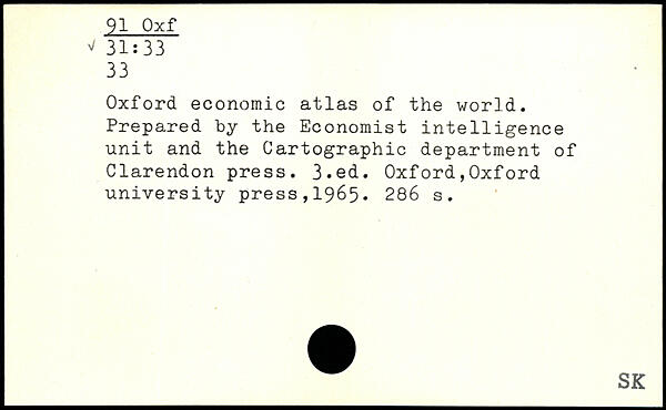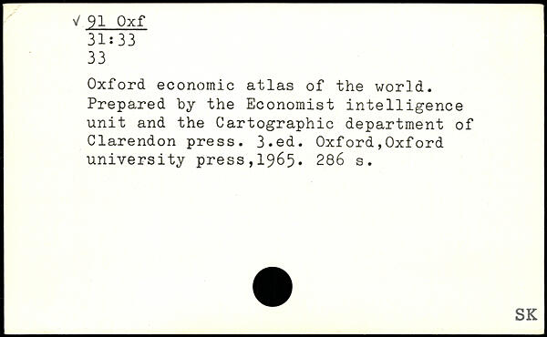 Oxford economic atlas of the world. Prepared by the Economist intelligence unit and the Cartographic department of Clarendon press.