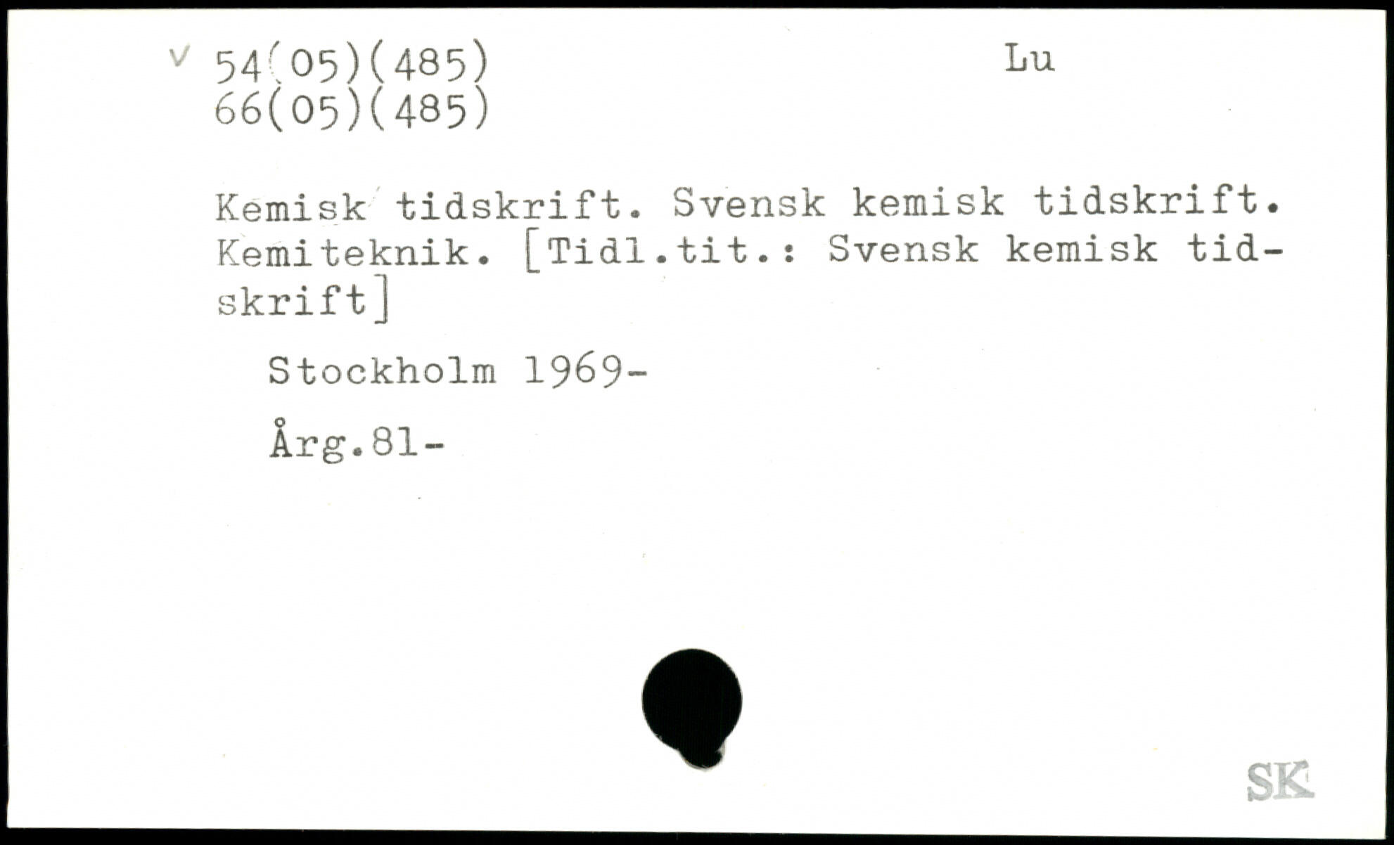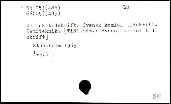 Kemisk tidskrift. Svensk kemisk tidskrift. Kemiteknik. [Tidl.tit.s Svensk kemisk tidskrift]