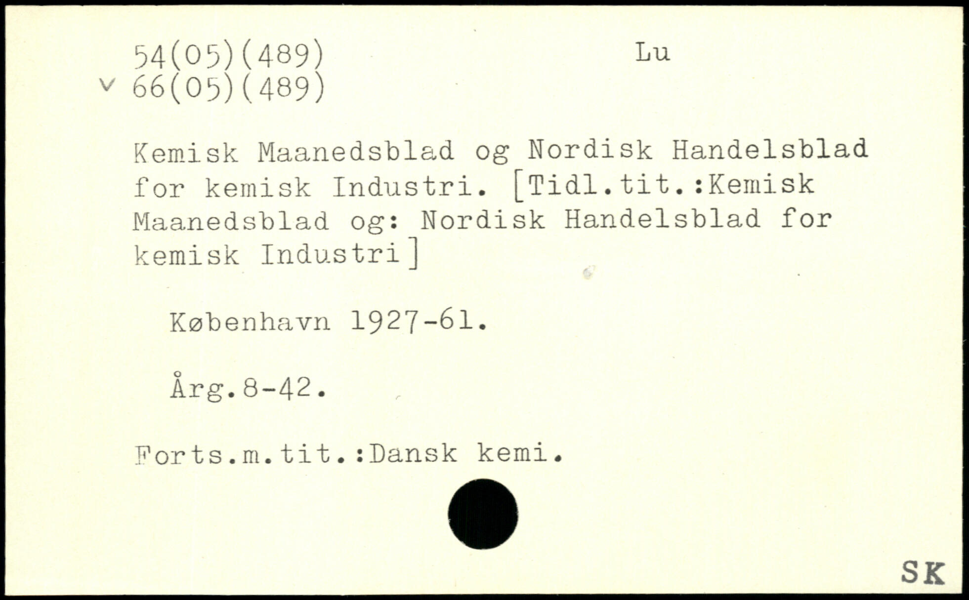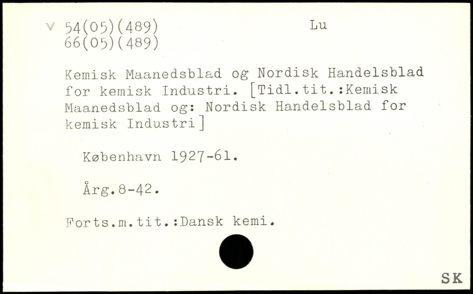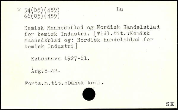 Kemisk Maanedsblad og Nordisk Handelsblad for kemisk Industri.