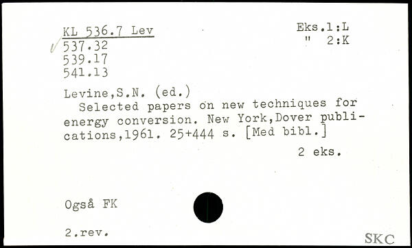 Selected papers on new techniques for energy conversion. New York,Dover publications,^!.