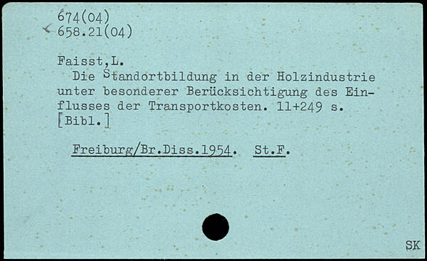 Die Standortbildung in der Holzindustrie unter besonderer Berücksichtigung des Einflusses der Transportkosten.