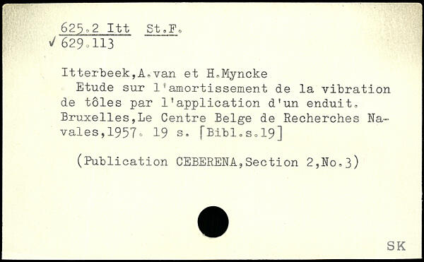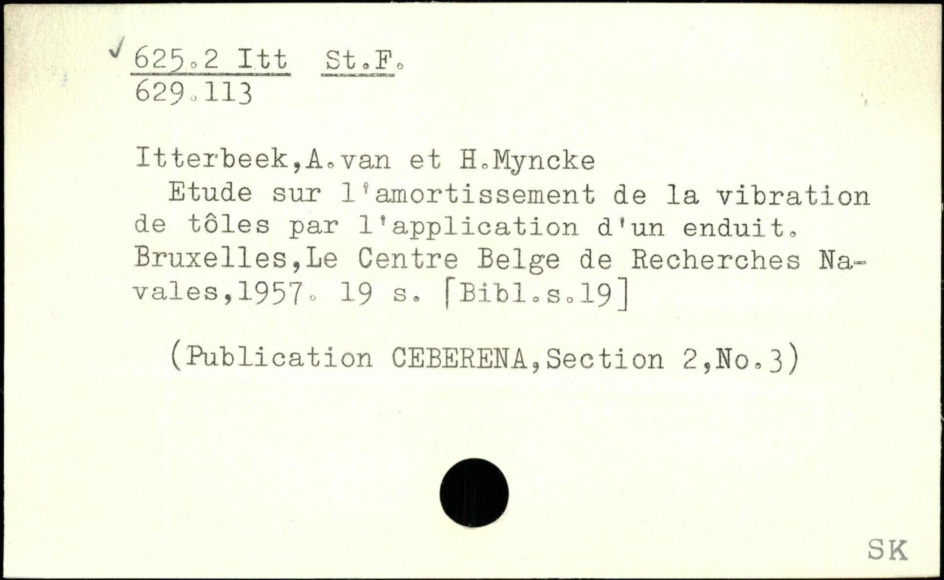 Etude sur l’amortissement de la vibration de tôles par l’application d’un enduit, Bruxelles,Le Centre Belge de Recherches Navales, 1957“