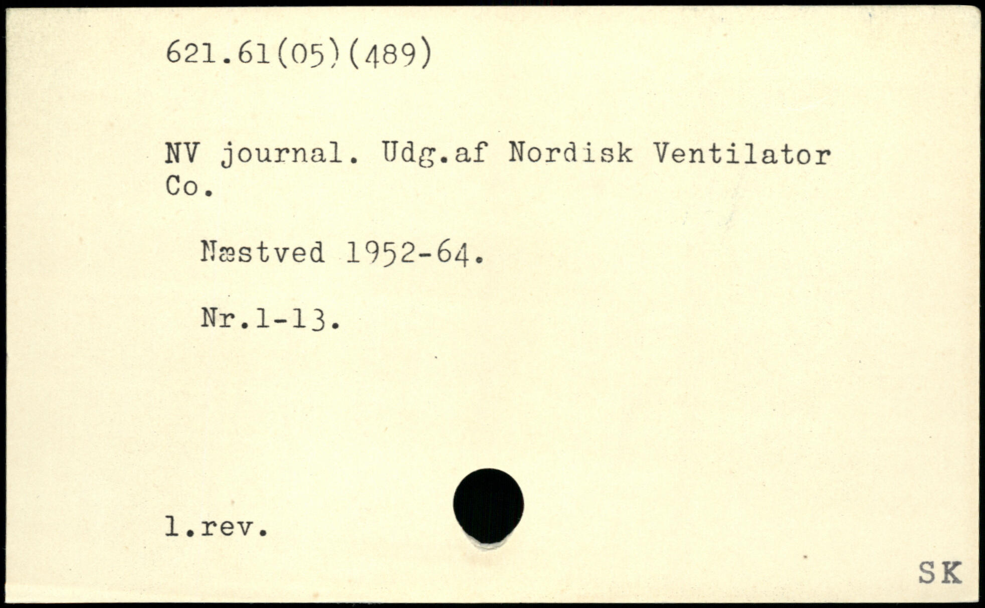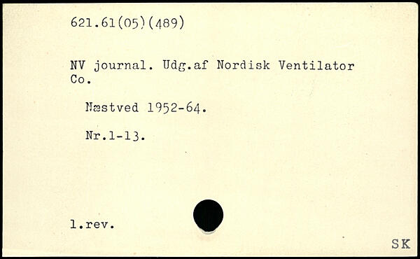 NV journal. Udg.af Nordisk Ventilator Co. Næstved 1952-64. Nr.1-13.