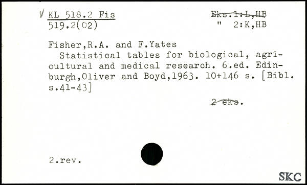 Forfatter: R.A. Fisher, F. Yates