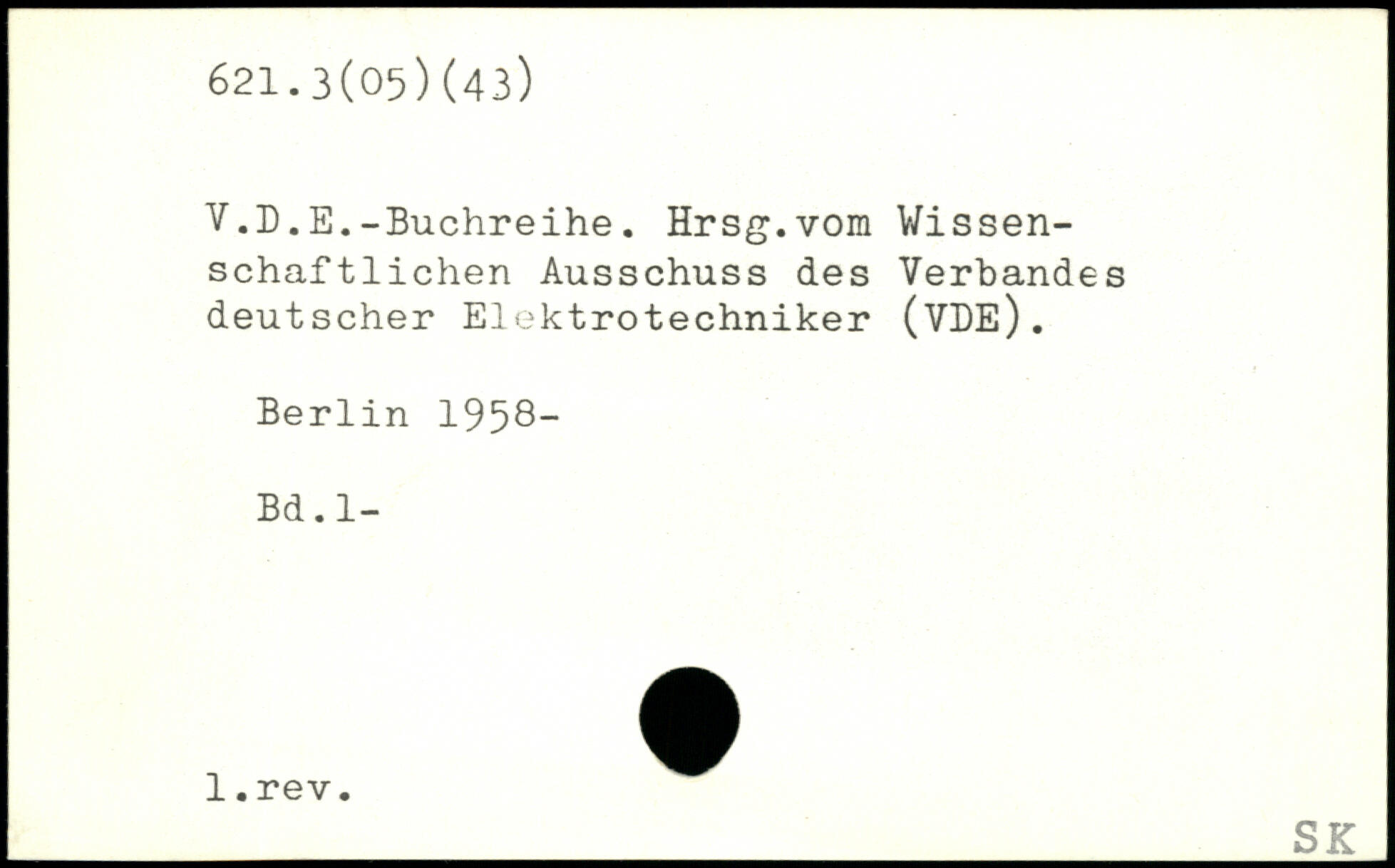 V.D.E.-Buchreihe. Hrsg.vom Wissenschaftlichen Ausschuss des Verbandes deutscher Elektrotechniker (VDE).