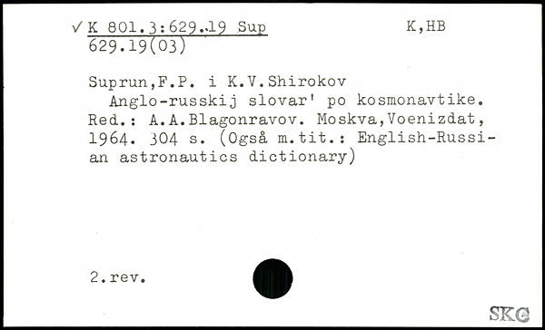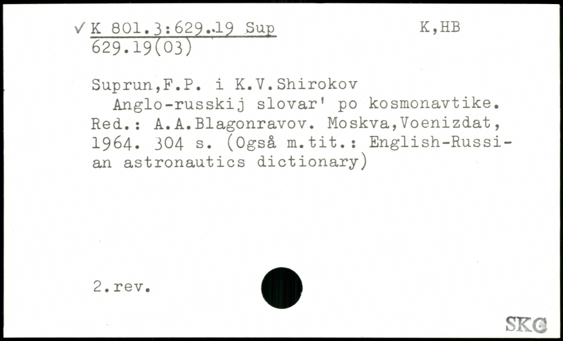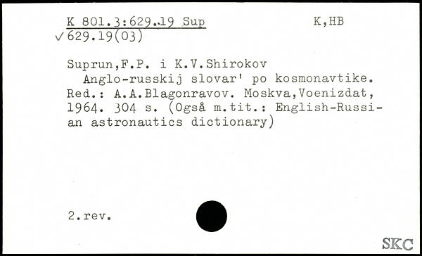 Anglo-russkij slovar’ po kosmonavtike. Red.: A.A.Blagonravov.