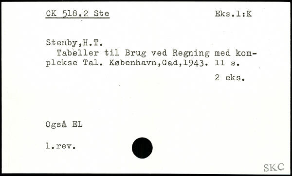 Tabeller til Brug ved Regning med komplekse Tal.