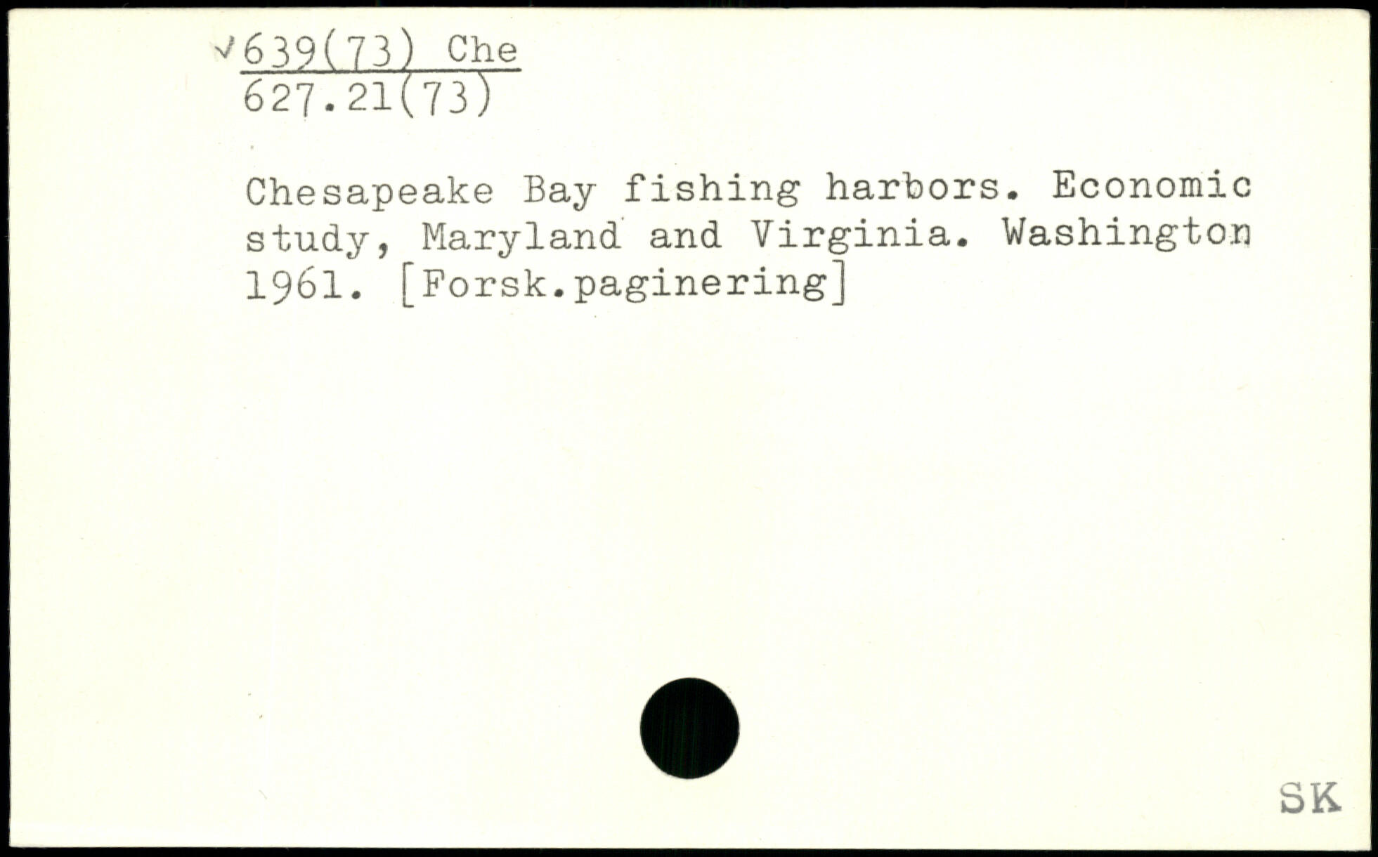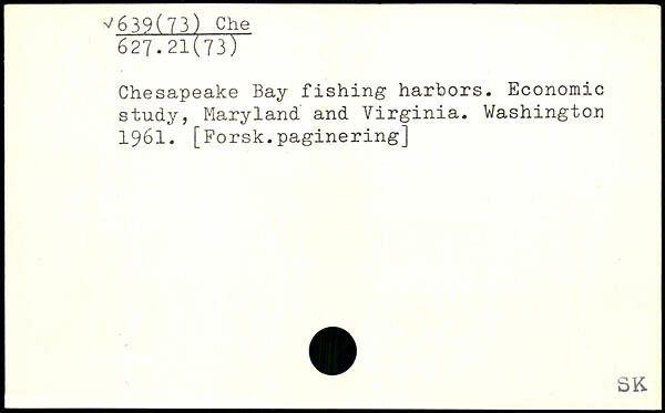 Chesapeake Bay fishing harbors. Economic study, Maryland and Virginia.