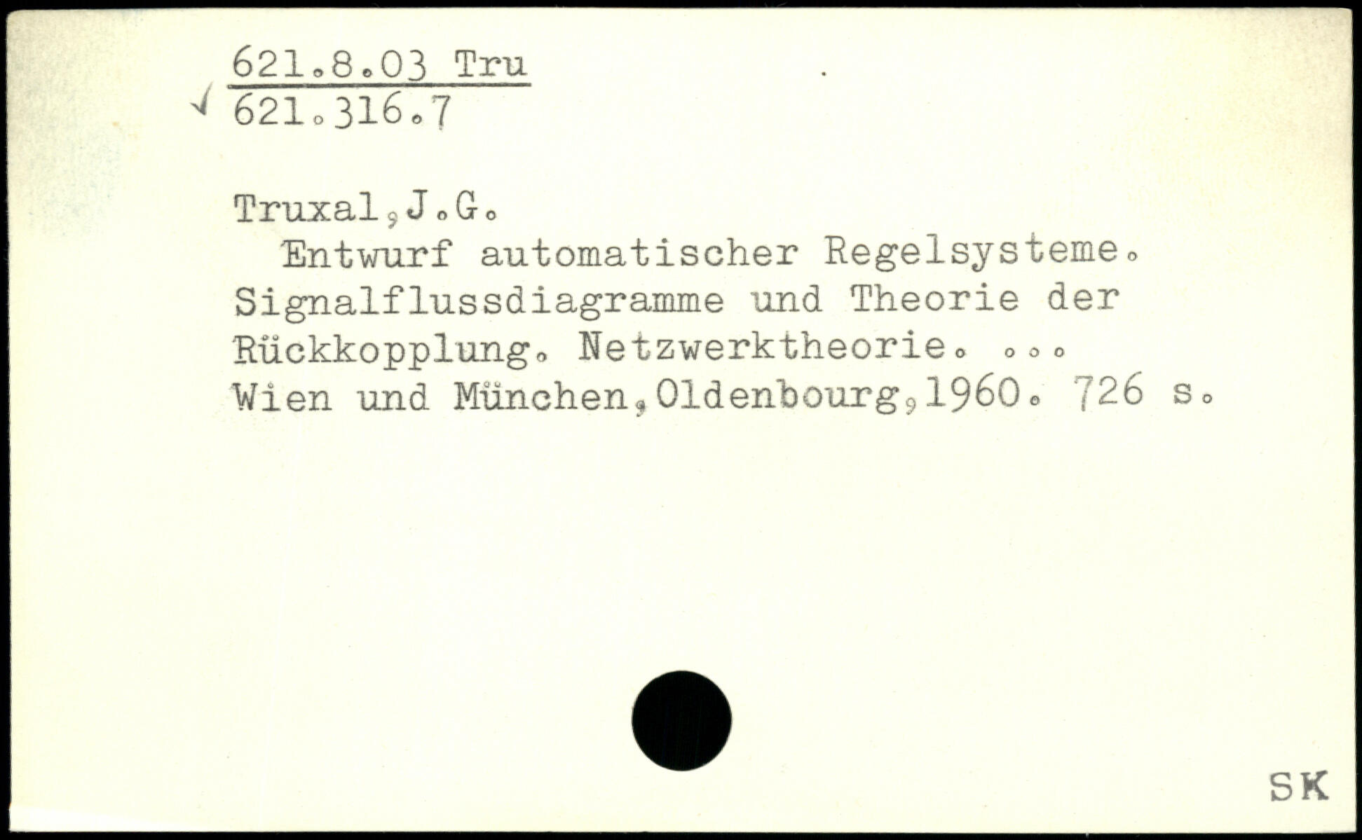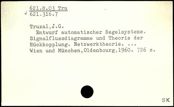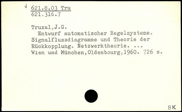 TruxalsJ ,Go Entwurf automatischer Regelsysteme. Signalflussdiagramme und Theorie der Rückkopplung. Netzwerktheorie. ... Wien und München,01denhourg91960.