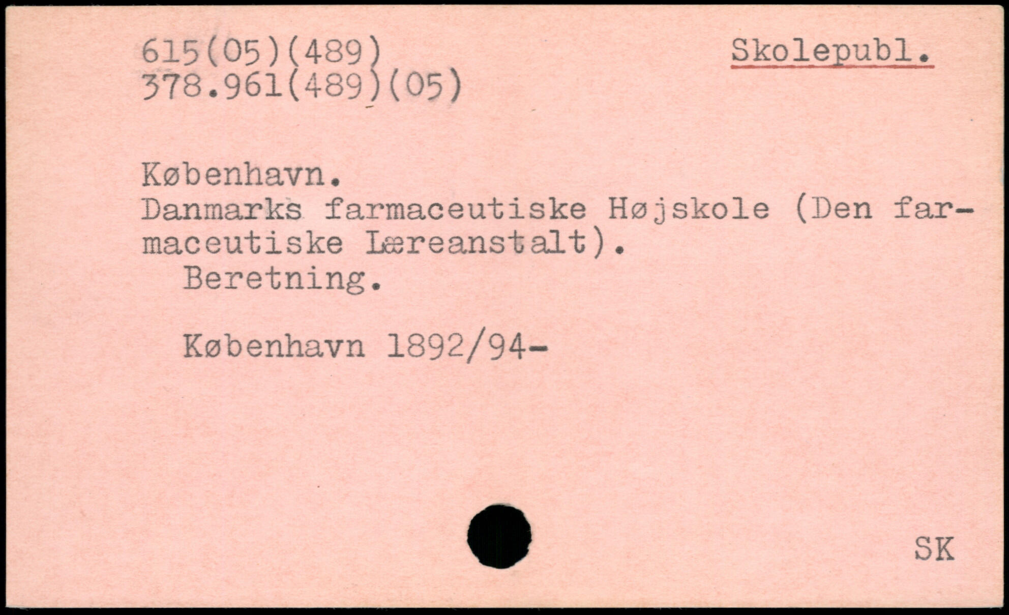 Danmarks farmaceutiske Højskole (Den farmaceutiske læreanstalt). Beretning.
