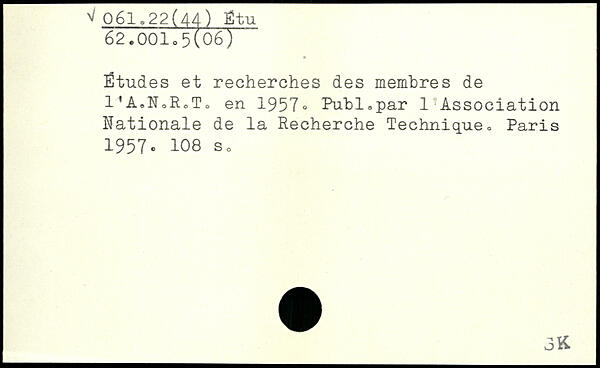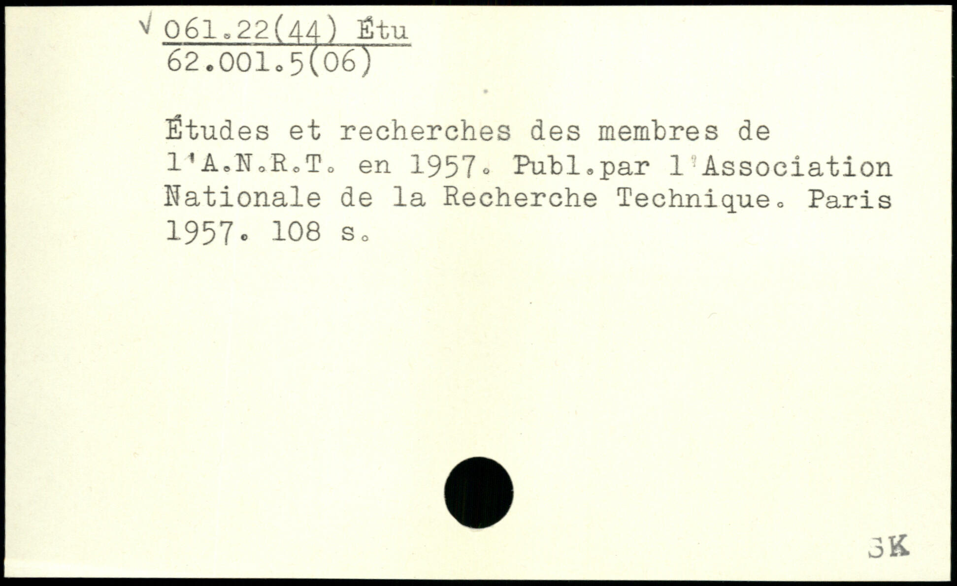 Études et recherches des membres de l’A.NoRoT, en 1957. Publ<,par 1-Association Nationale de la Recherche Technique