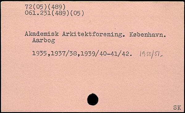 Akademisk Arkitektforening. København. Aarbog. 1935,1937/38,1939/40-41/42. 7-