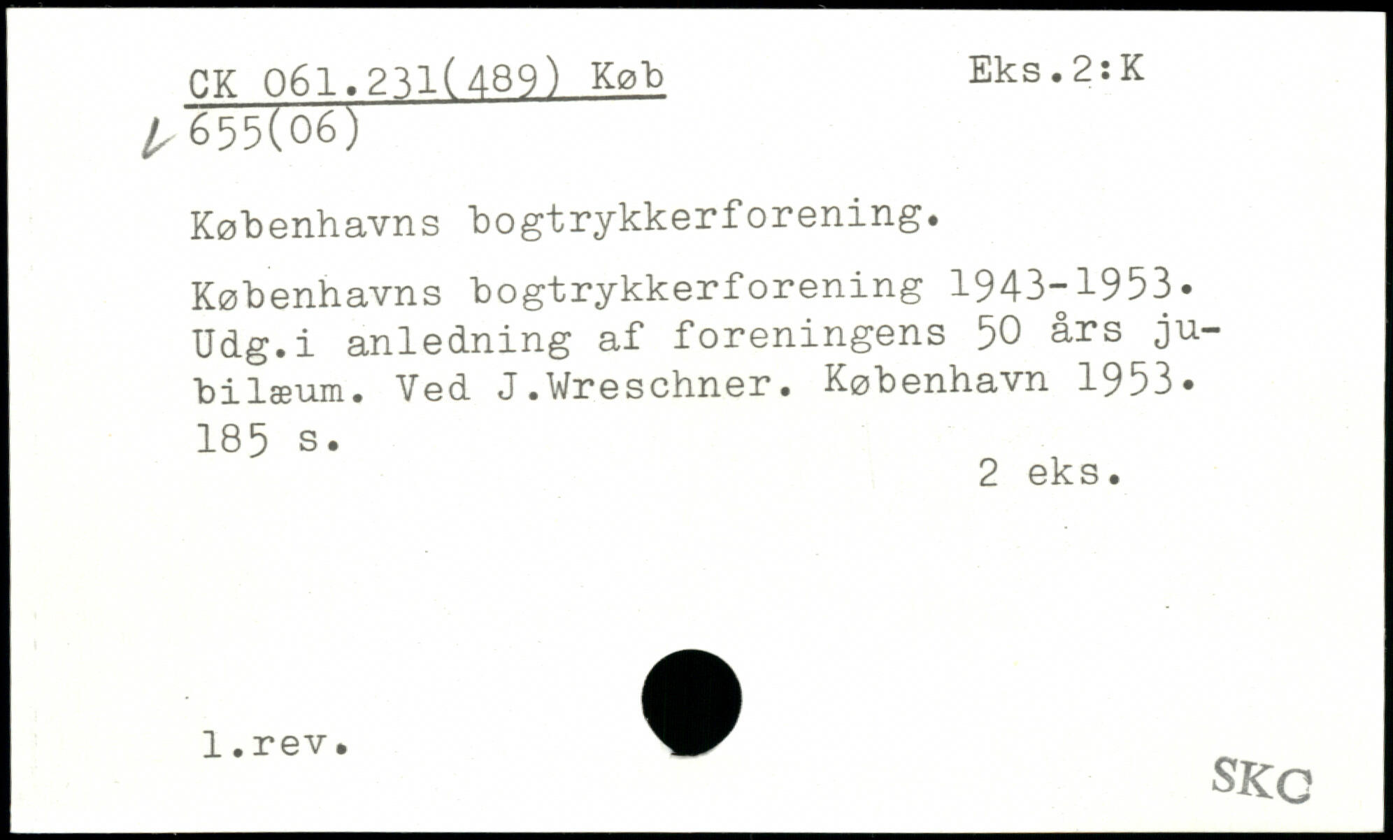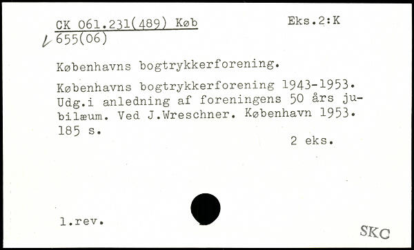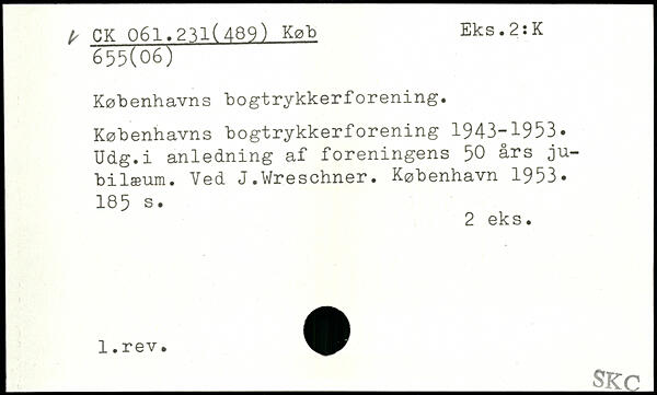 Københavns bogtrykkerforening. Københavns bogtrykkerforening 1943-1953. Udg.i anledning af foreningens 50 års jubilæum. Ved J.Wreschner.