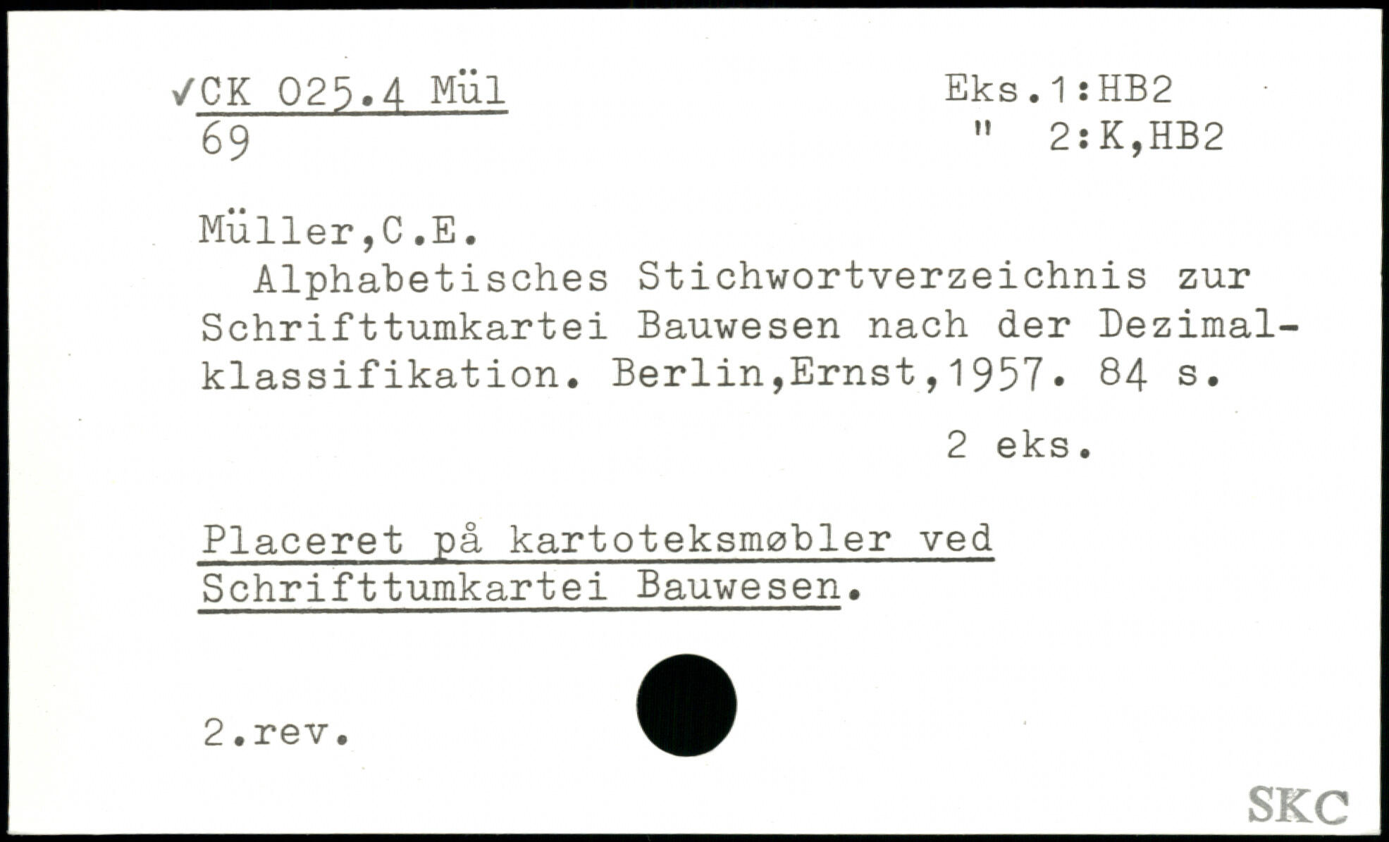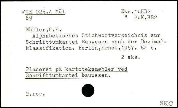 Alphabetisches Stichwortverzeichnis zur Schrifttumkartei Bauwesen nach der Dezimalklassifikation.