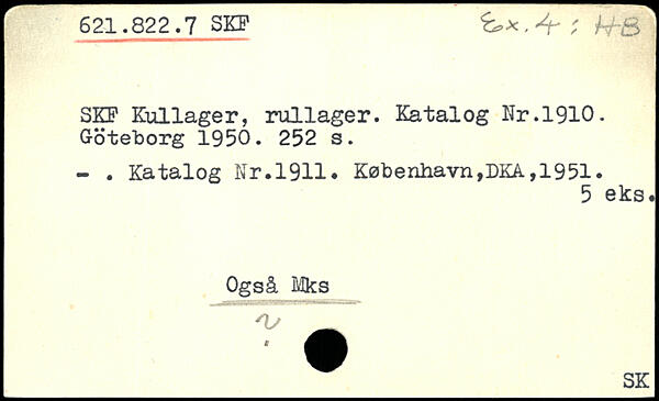 SKF Kullager, rullager. Katalog Hr.1910. Göteborg 1950.