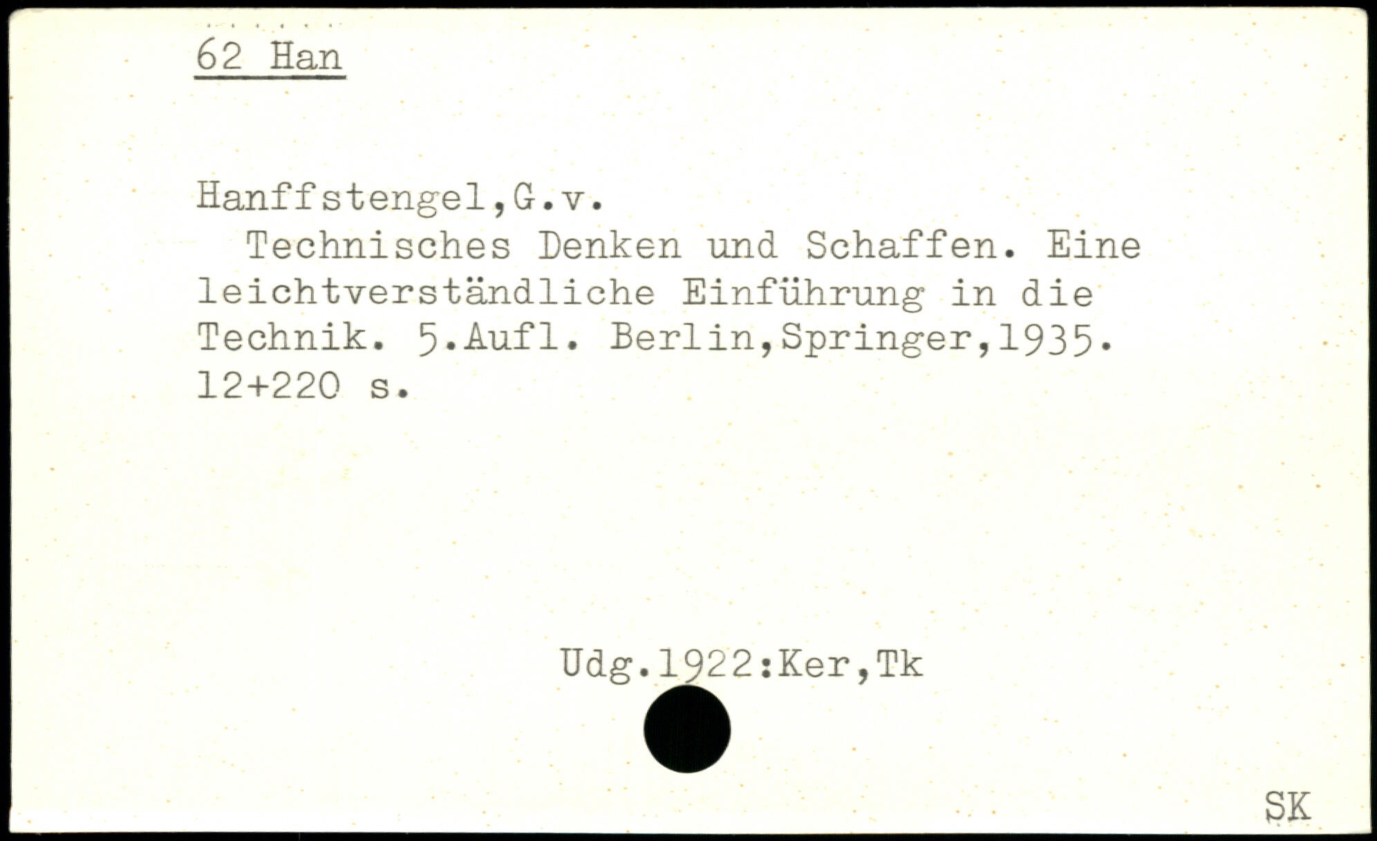 Hanff stengel, G. v. Technisches Henken und Schaffen. Eine leichtverständliche Einführung in die Technik.